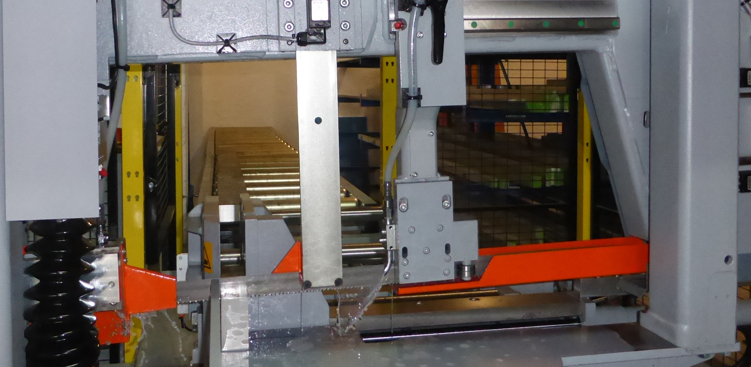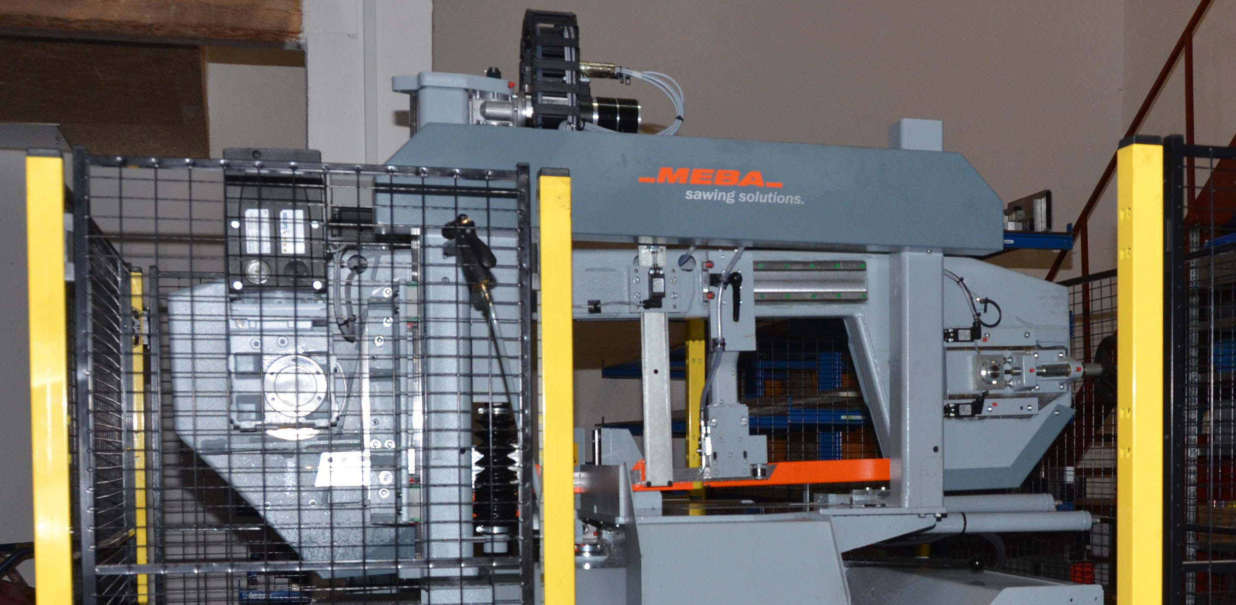 Die halbautomatische MEBA-Metallbandsäge 335 G 5 bietet elektrischen Sägevorschub mit Kugelrollspindel gepaart mit einem stufenlos geregelten Sägebandantrieb und manueller Gehrungseinstellung.